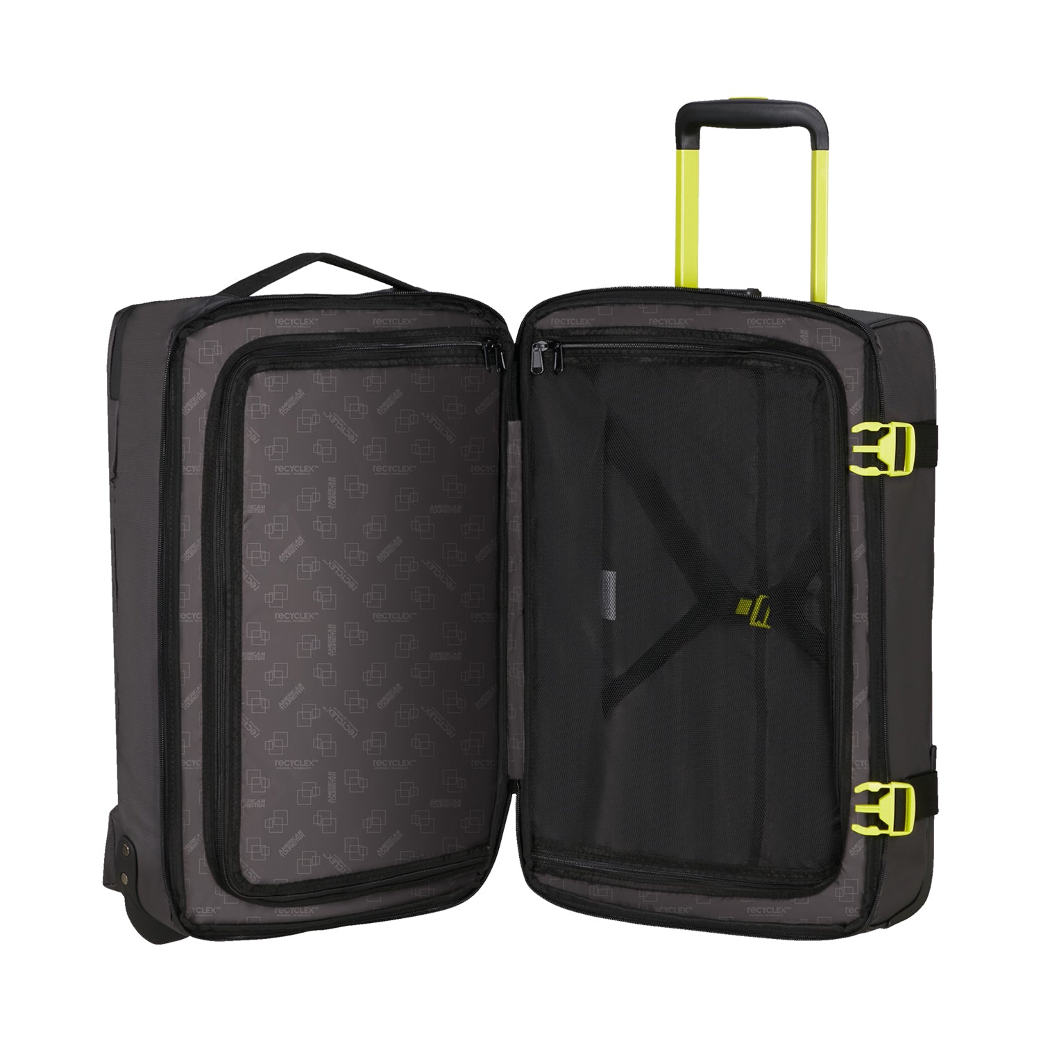 Cestová taška na kolečkách z vodotesného a recyklovaného materiálu poskytuje praktickosť, odolnosť a udržateľnosť.