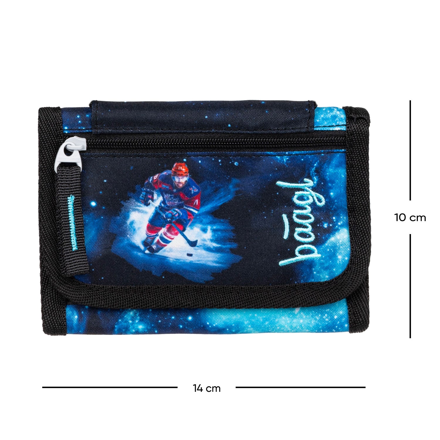 Modrá peňaženka pre mladých športovcov a fanúšikov hokeja poskytuje dostatok priestoru na uloženie čipu na obed, lietačky aj vreckového. Vďaka menovke a možnosti zavesenia na krk má školáčik všetko potrebné stále po ruke.