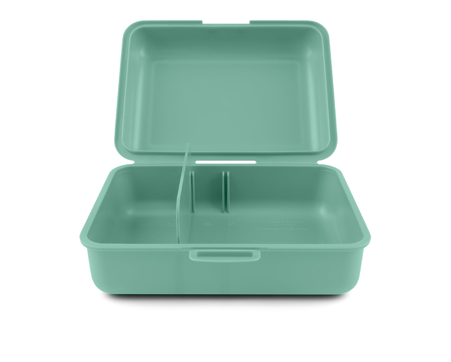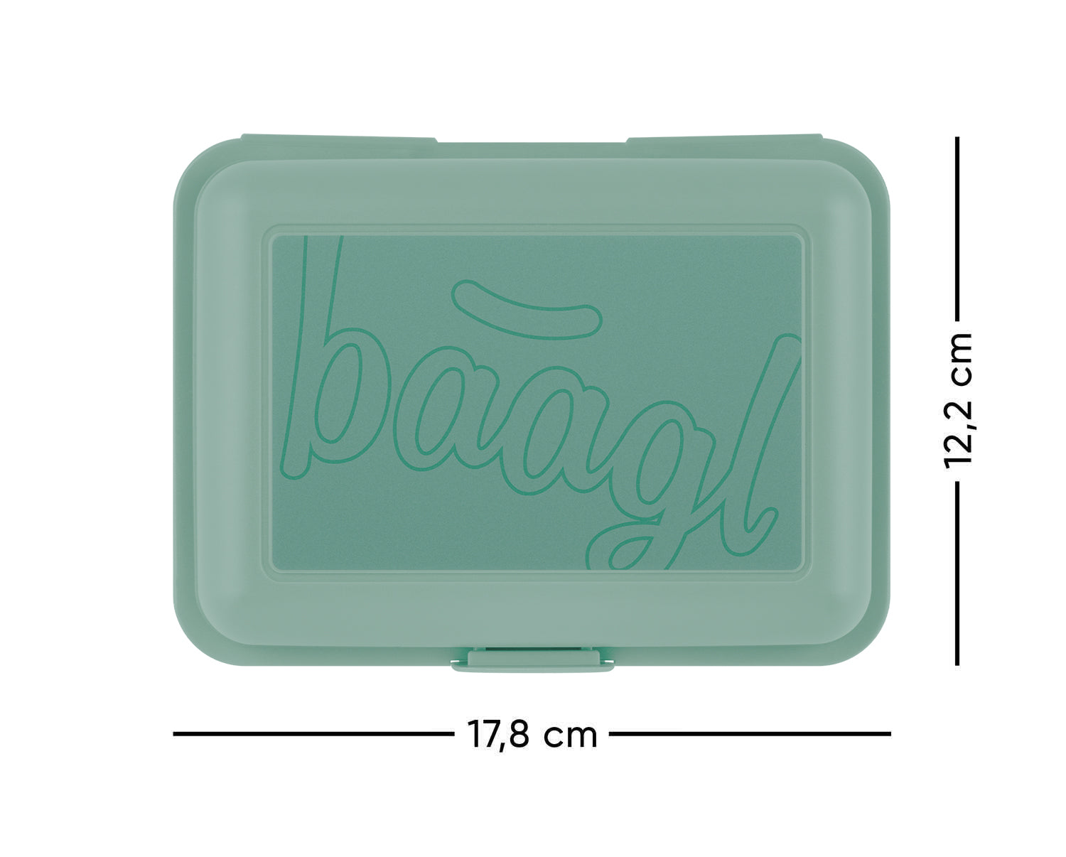 Svetlo zelený box na desiatu s logom BAAGL. Obsahuje polohovateľnú priečku na oddelenie potravín.