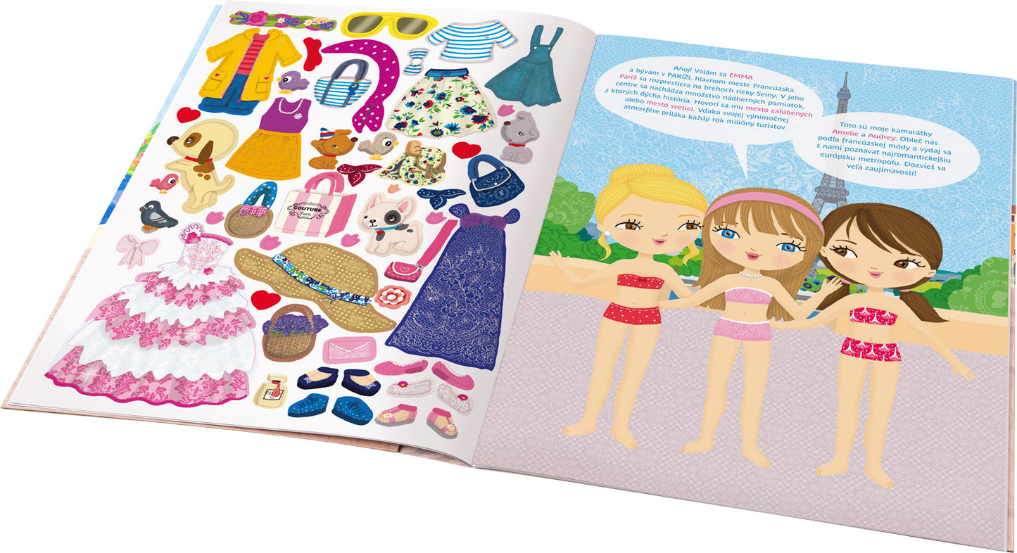Objavuj s Emmou krásy Paríža! Doplň známe parížske zákutia o zamilované páry, kvety a mnoho ďalších detailov – máš na to 250 samolepiek! Obľúbená séria minimiky prichádza s ďalšou novinkou v podobe zábavnej samolepkovej knižky, v ktorej budú deti spolu s bábikou Emmou a jej kamarátkami Améliou a Audrey objavovať najznámejšie kúty francúzskej metropoly Paríža, nazývaného aj „mesto zamilovaných“. Parížsku scenériu môžu doplniť množstvom krásnych samolepiek podľa vlastnej fantázie a v knižočke nájdu aj mnoho zaujímavých informácií o tamojších pamiatkach, známych miestach, ale tiež napríklad o delikatesách svetoznámej francúzskej kuchyne.