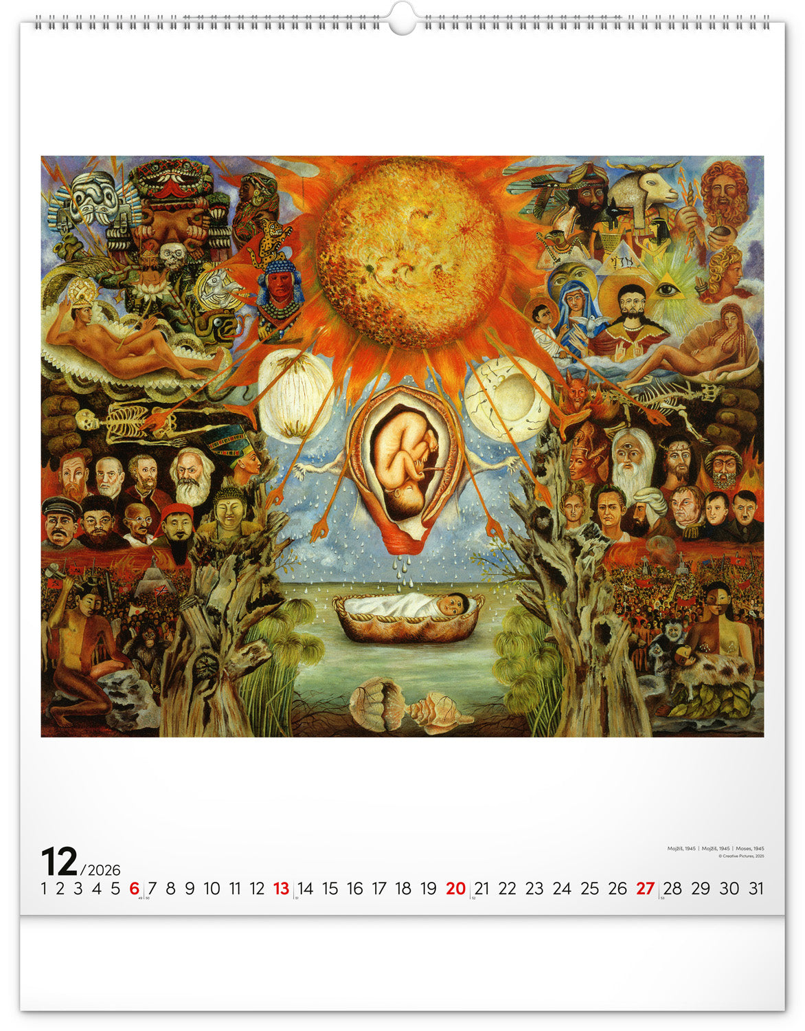 Veľkoformátový kalendár s výberom obrazov ikonickej mexickej maliarky Fridy Kahlo.
