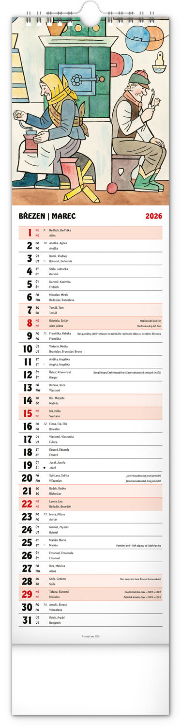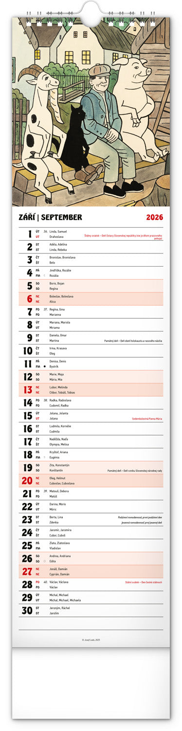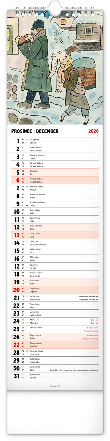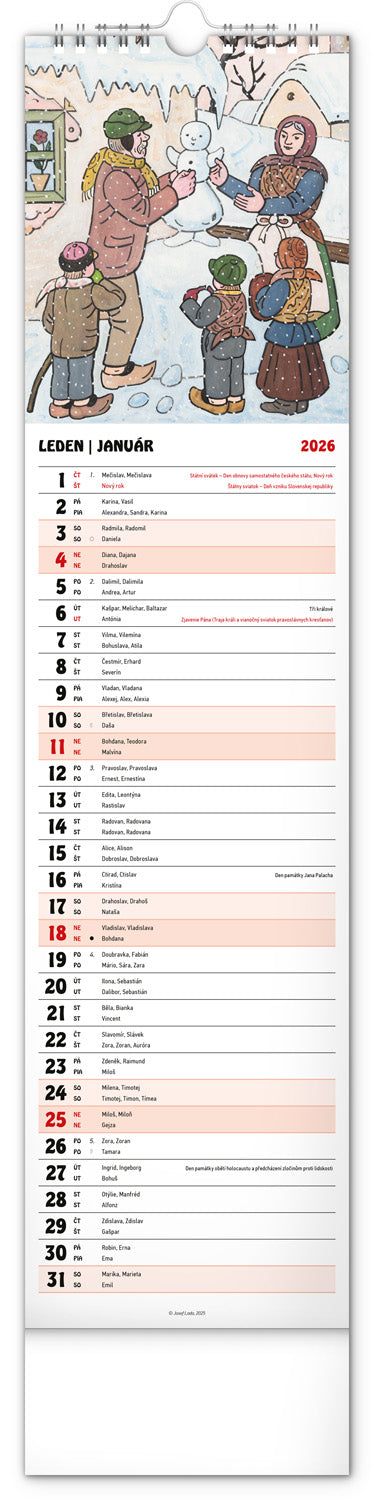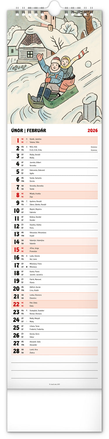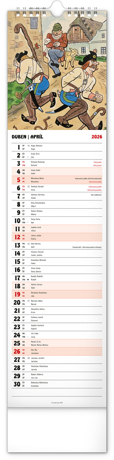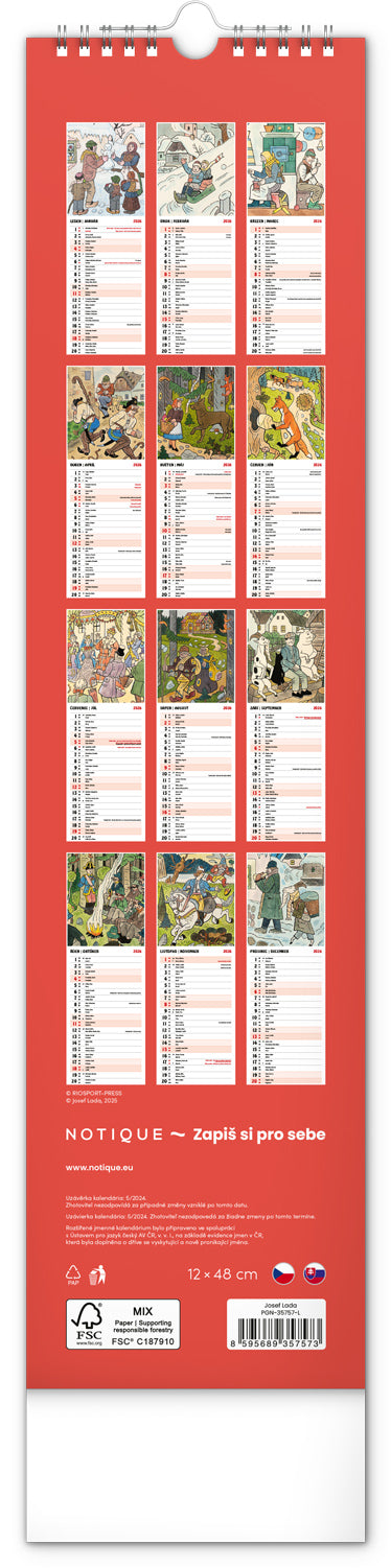 Nástenný kalendár Josef Lada CZ/SK 2026, 12 x 48 cm
