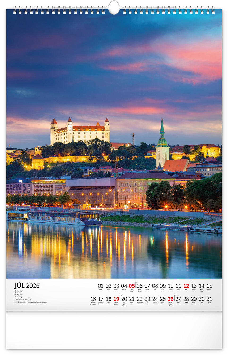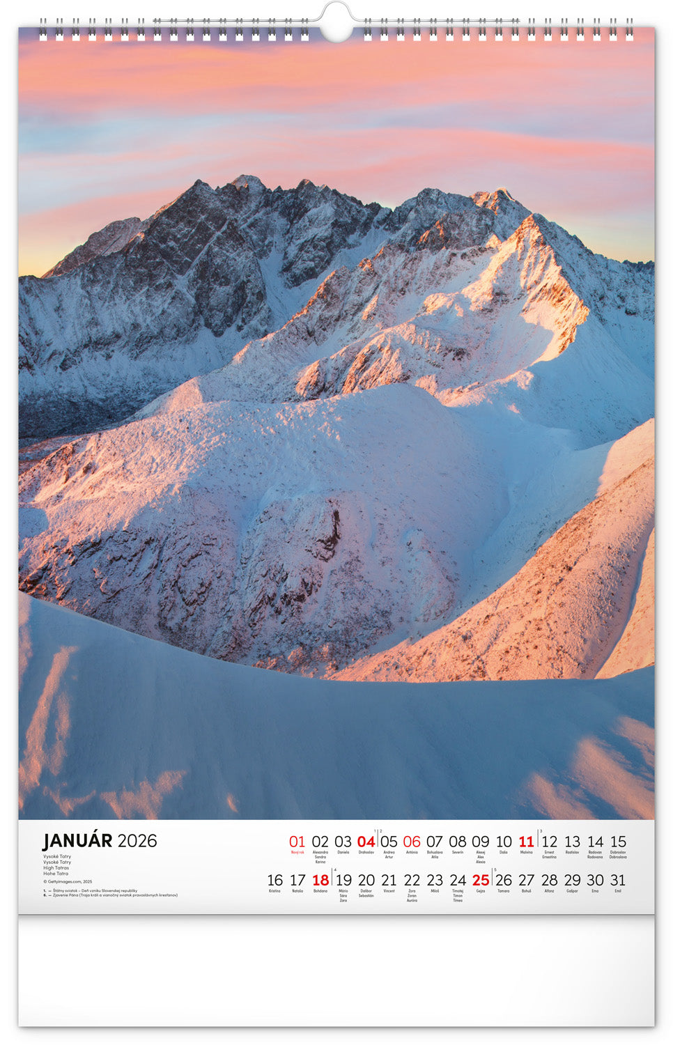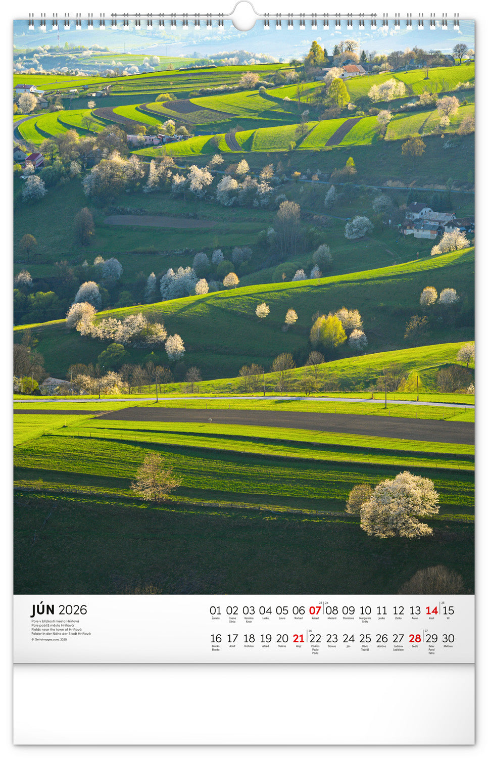 Nástenný kalendár s priestorom na poznámky obsahuje dvanásť farebných fotografií obľúbených slovenských lokalít.