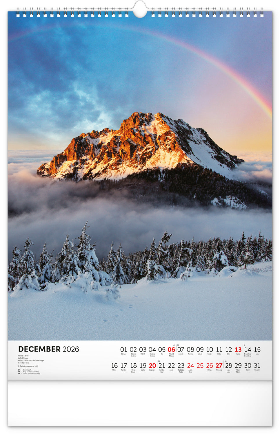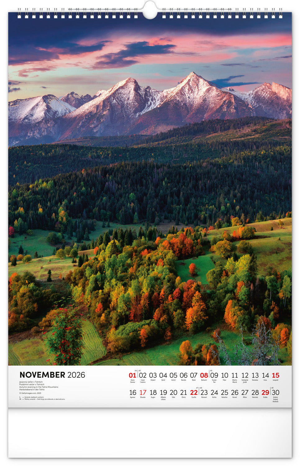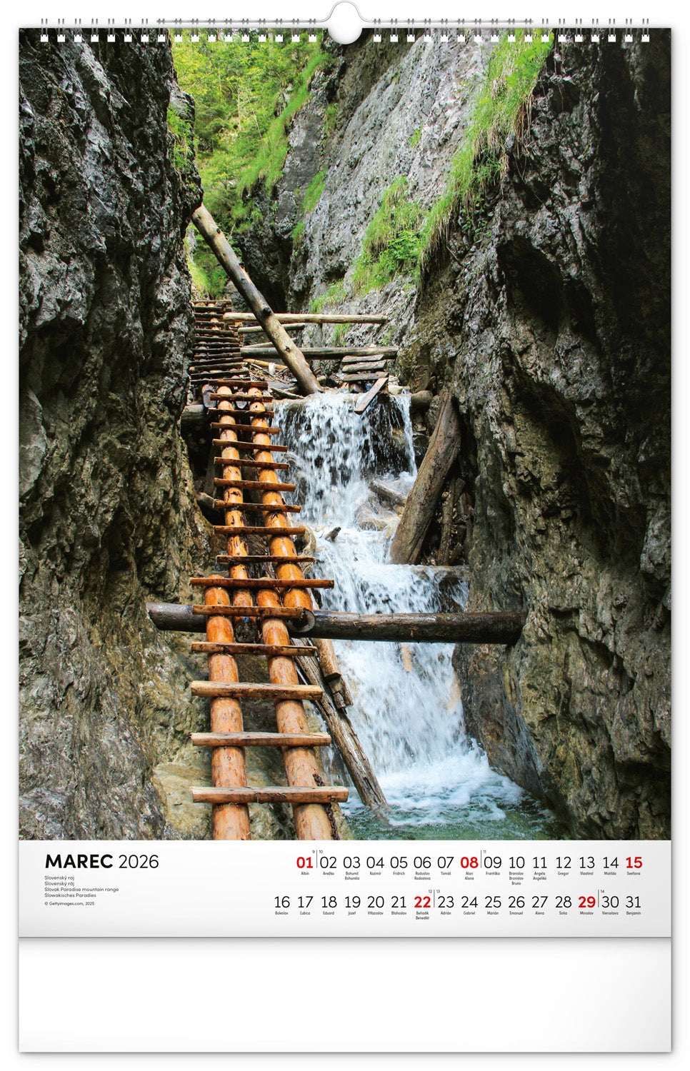 Nástenný kalendár s priestorom na poznámky obsahuje dvanásť farebných fotografií obľúbených slovenských lokalít.