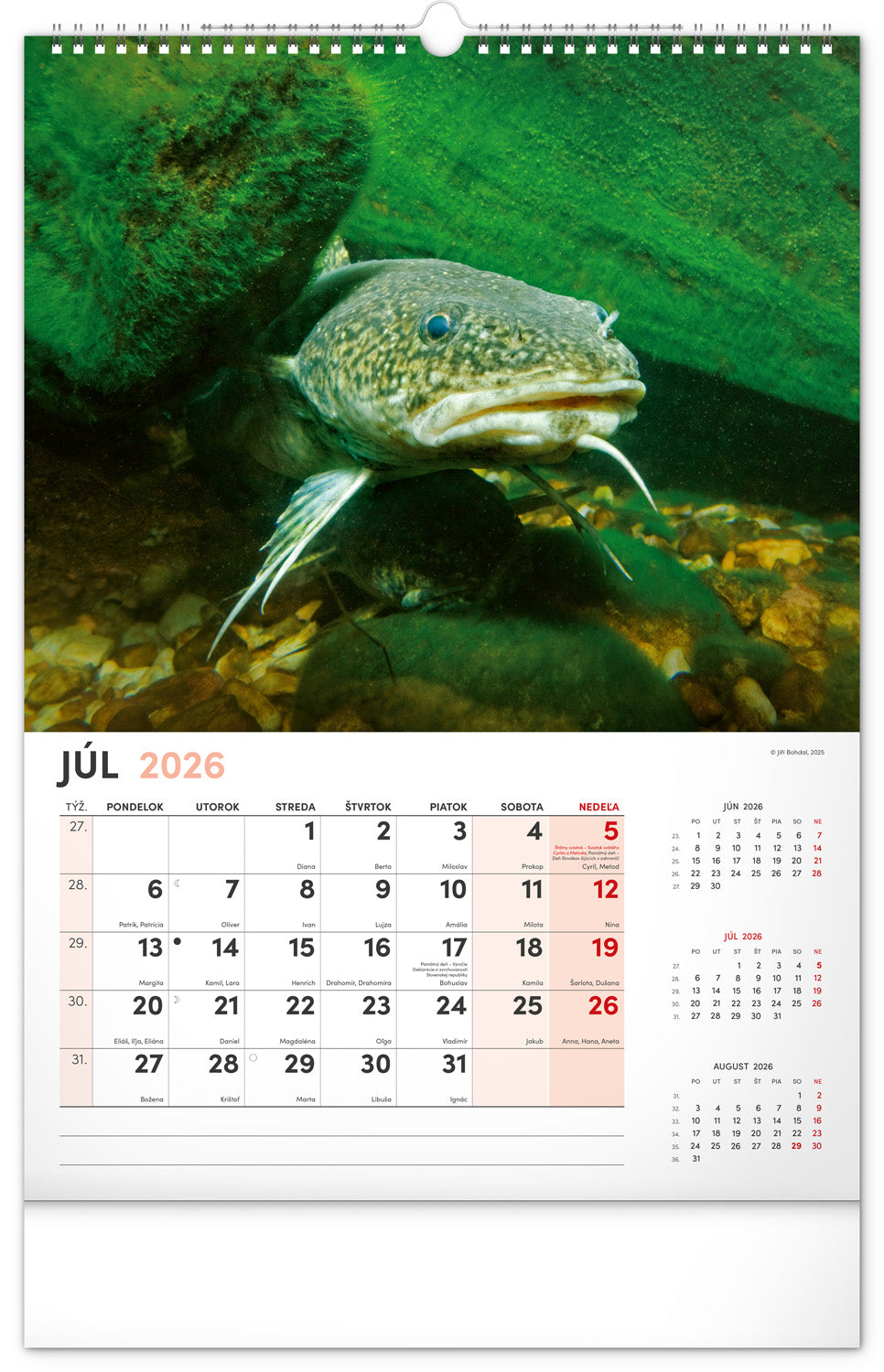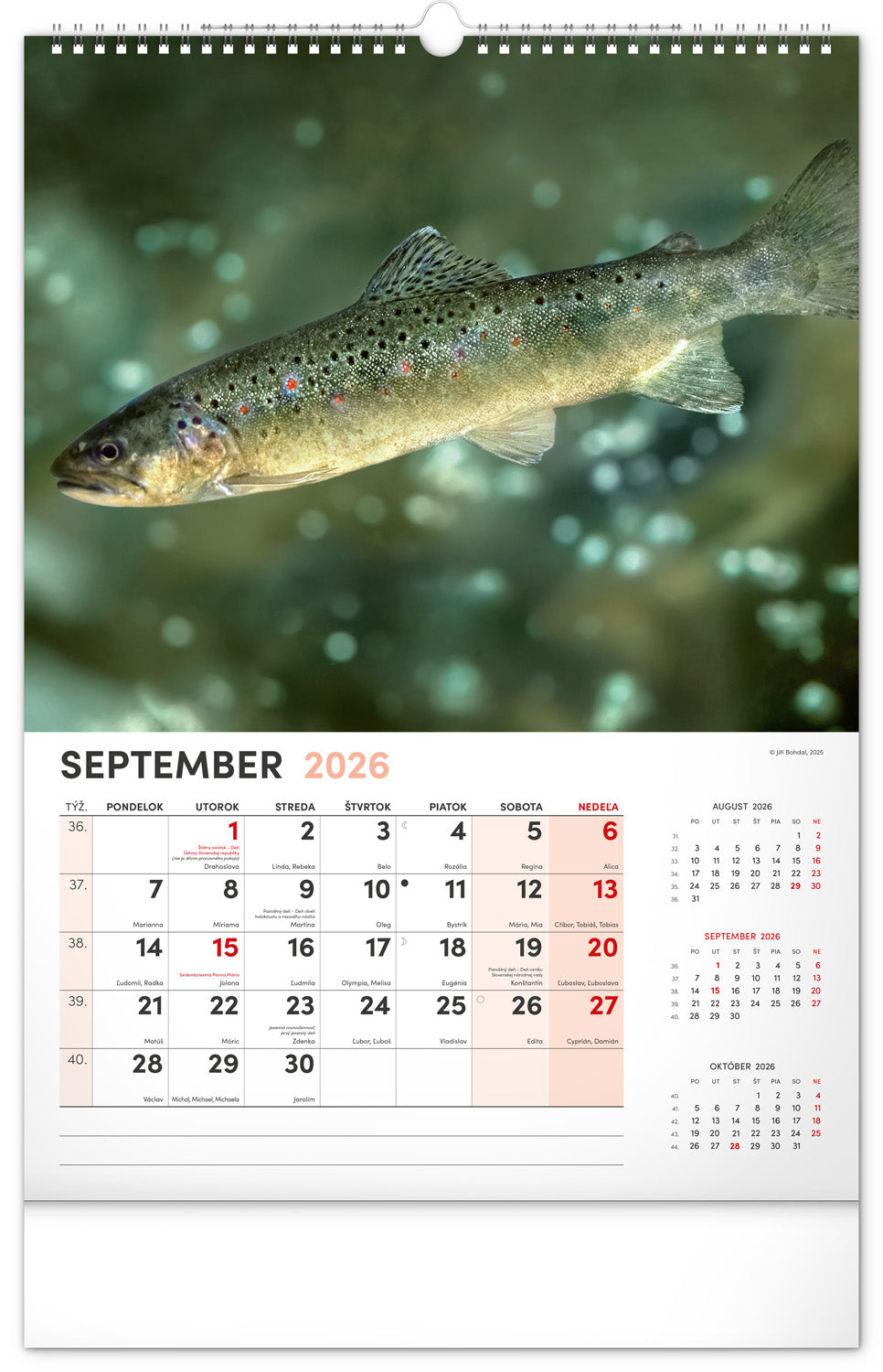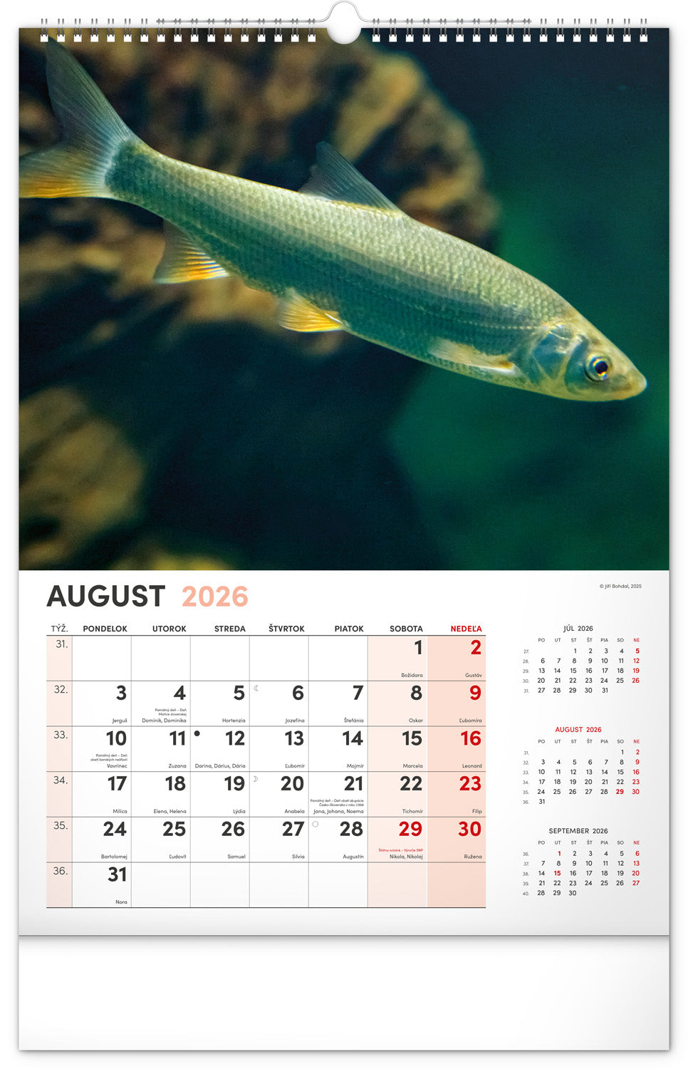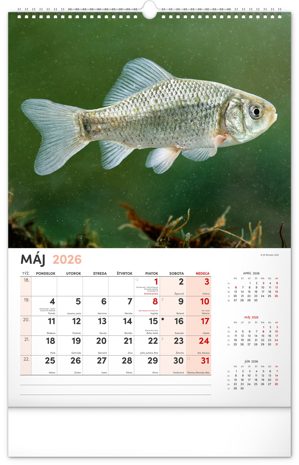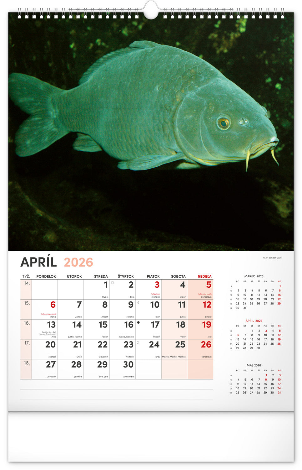 Dvanásť fotografií z vodného sveta v tomto nástennom kalendári zachytávajú tie najskvostnejšie úlovky. Rozšírené kalendárium obsahuje slovenské mená, sviatky a pamätné dni, trojmesačný prehľad na každej strane a priestor pre poznámky. Nadchne všetkých vášnivých rybárov a milovníkov vodných plôch.