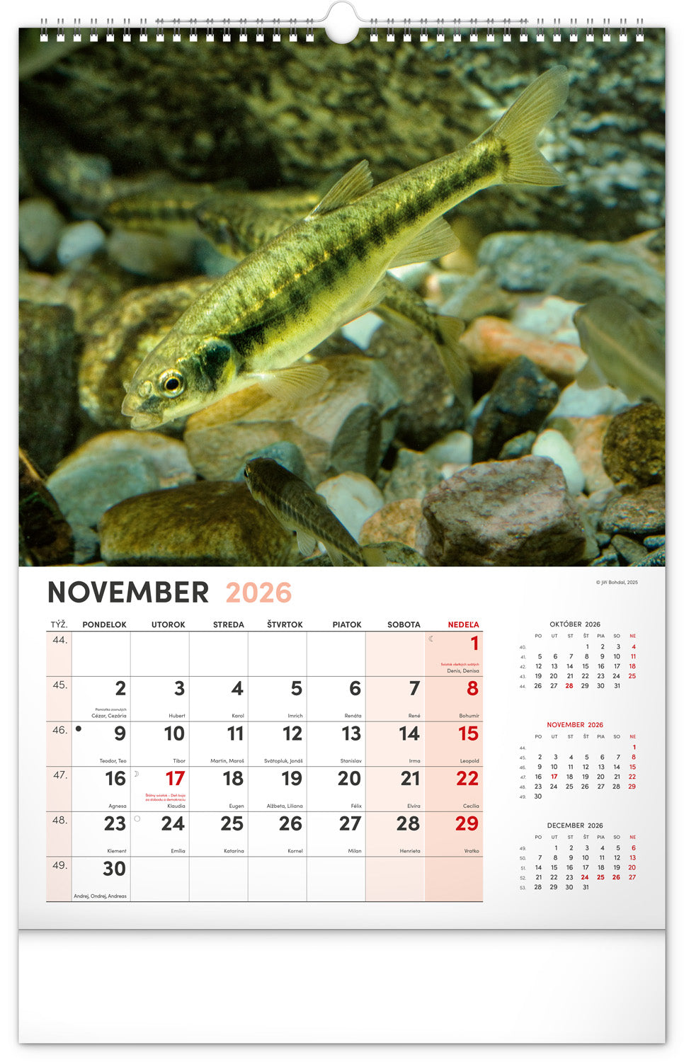 Nástenný kalendár s fotografiami obyvateľov vodného sveta.