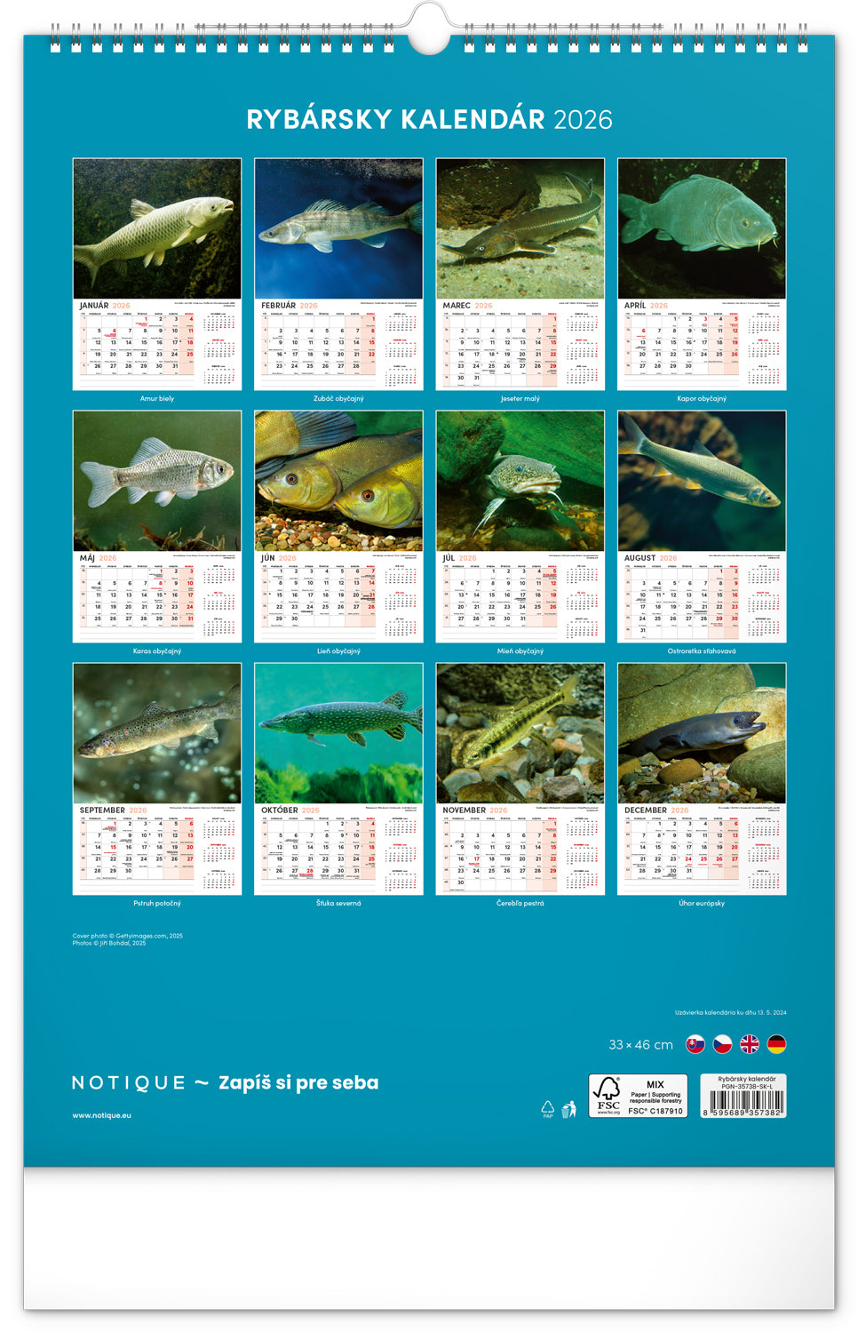 Nástenný kalendár Rybársky 2026, 33 x 46 cm