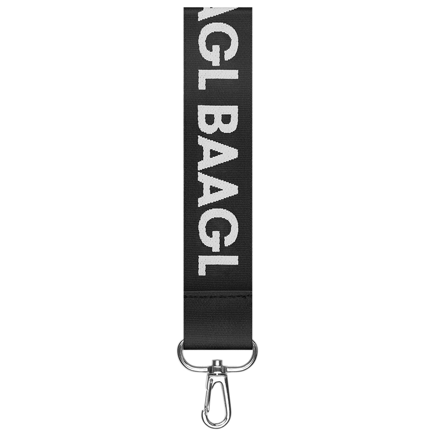 Textilný prívesok na kľúče s karabínkou v čiernej farbe.