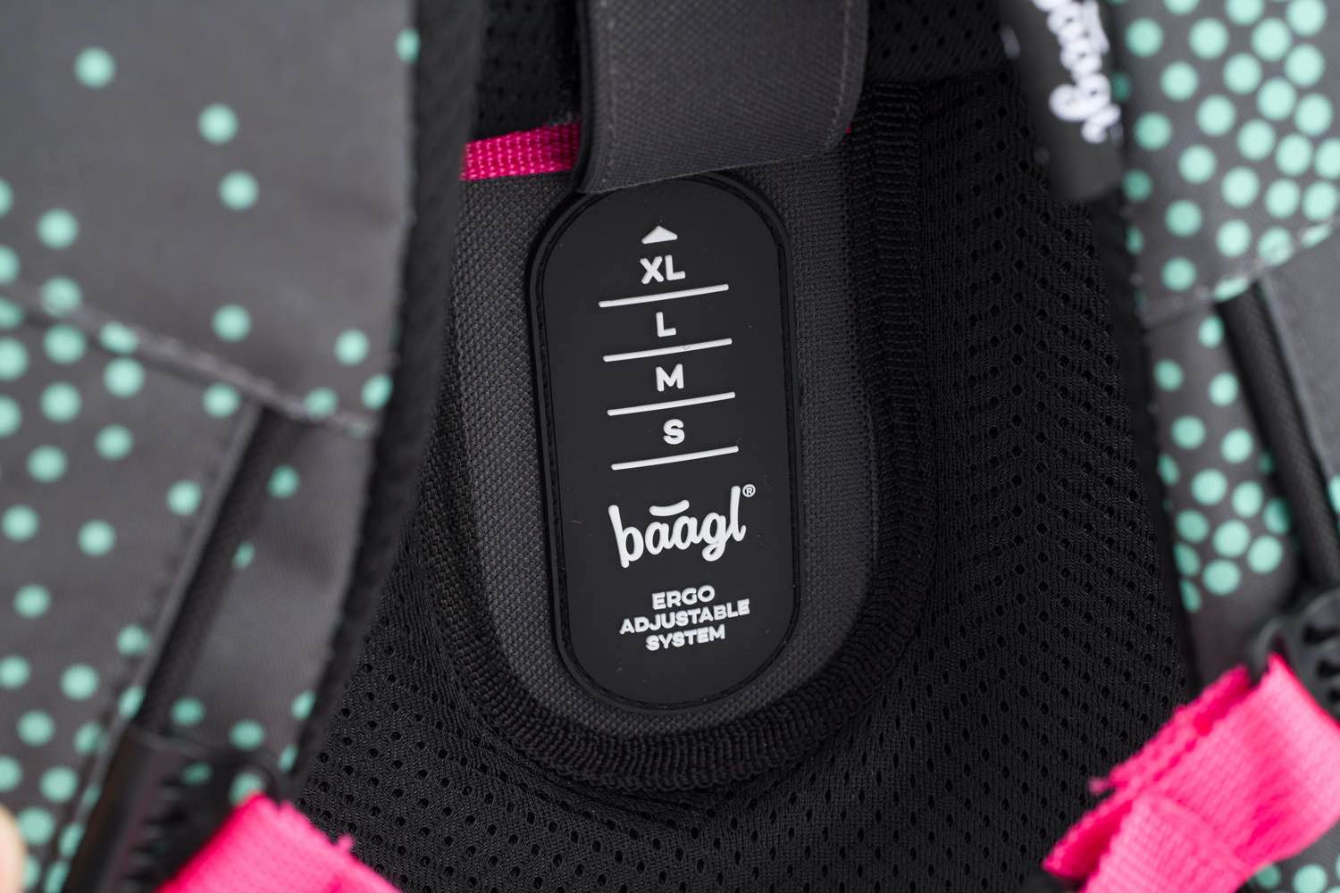 • Posuvný chrbtový systém ERGO ADJUSTABLE SYSTEM umožňuje nastavenie optimálnej polohy popruhov vzhľadom k výške dieťaťa.
