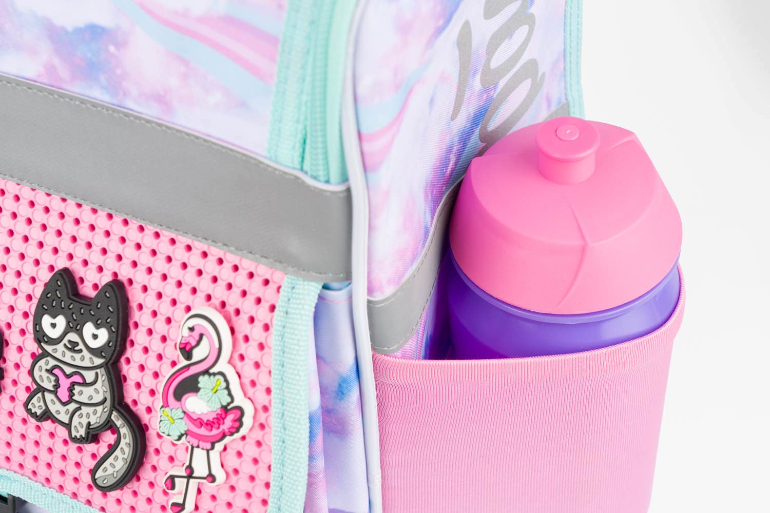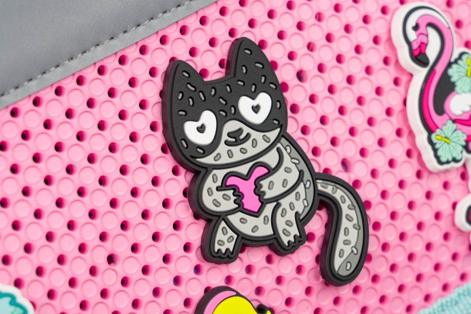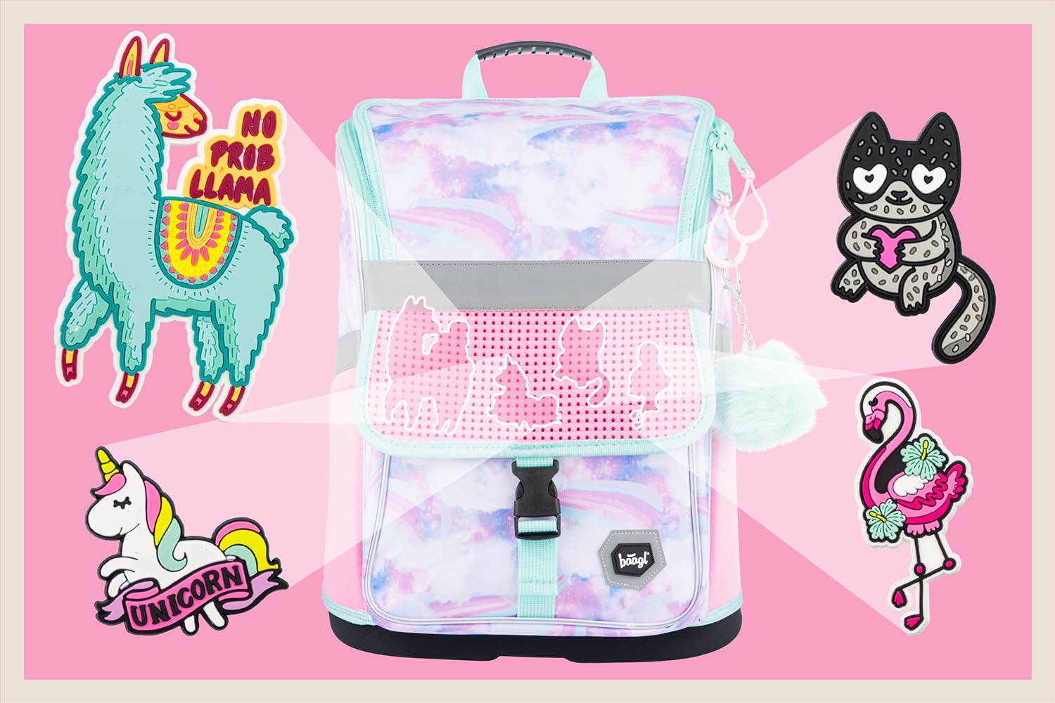 • Na klopu predného vrecka môžete ľubovoľne pripevňovať odznaky, ktoré sú k aktovke ako darček.