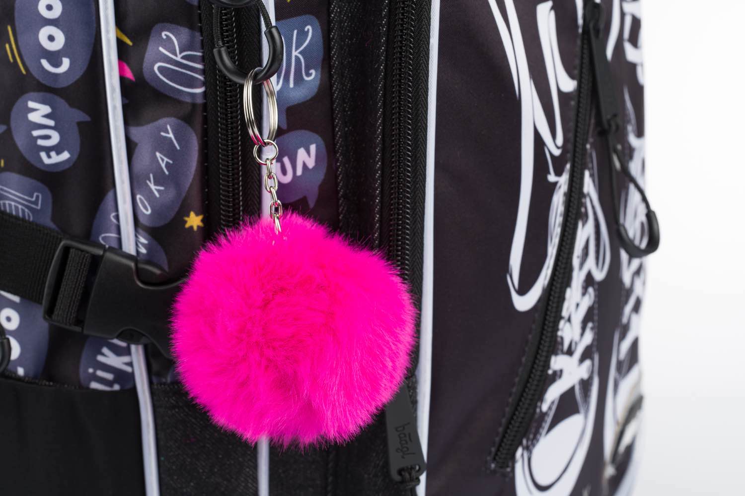 • Batoh je vybavený trendy chlpatým príveskom.