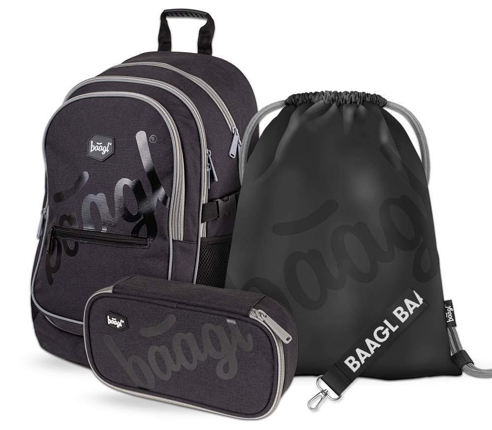 Cenovo veľmi výhodná školská sada. Táto sada je zložená z čierneho batohu, peračníku a vrecka na obuv s logom BAAGL.