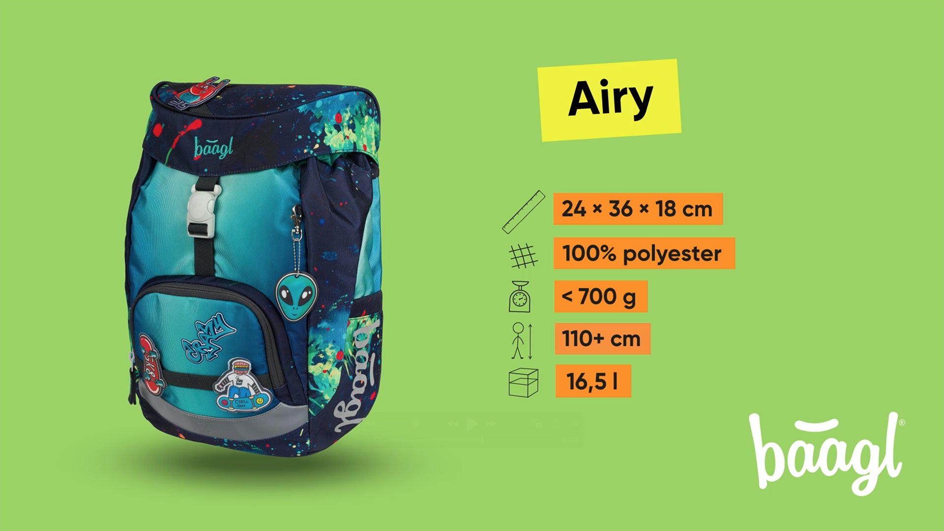• Ultraľahký batoh Airy vhodný od prvej triedy ZŠ.