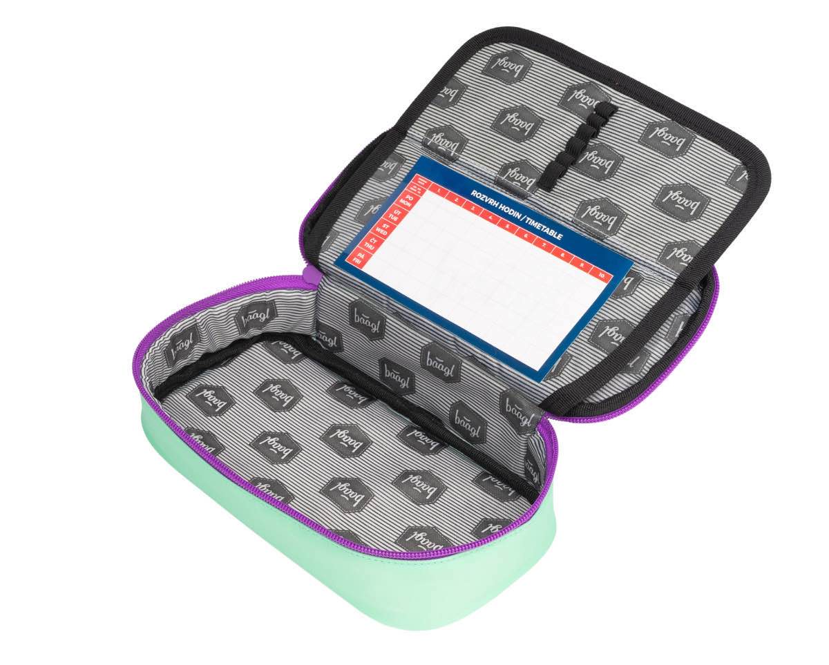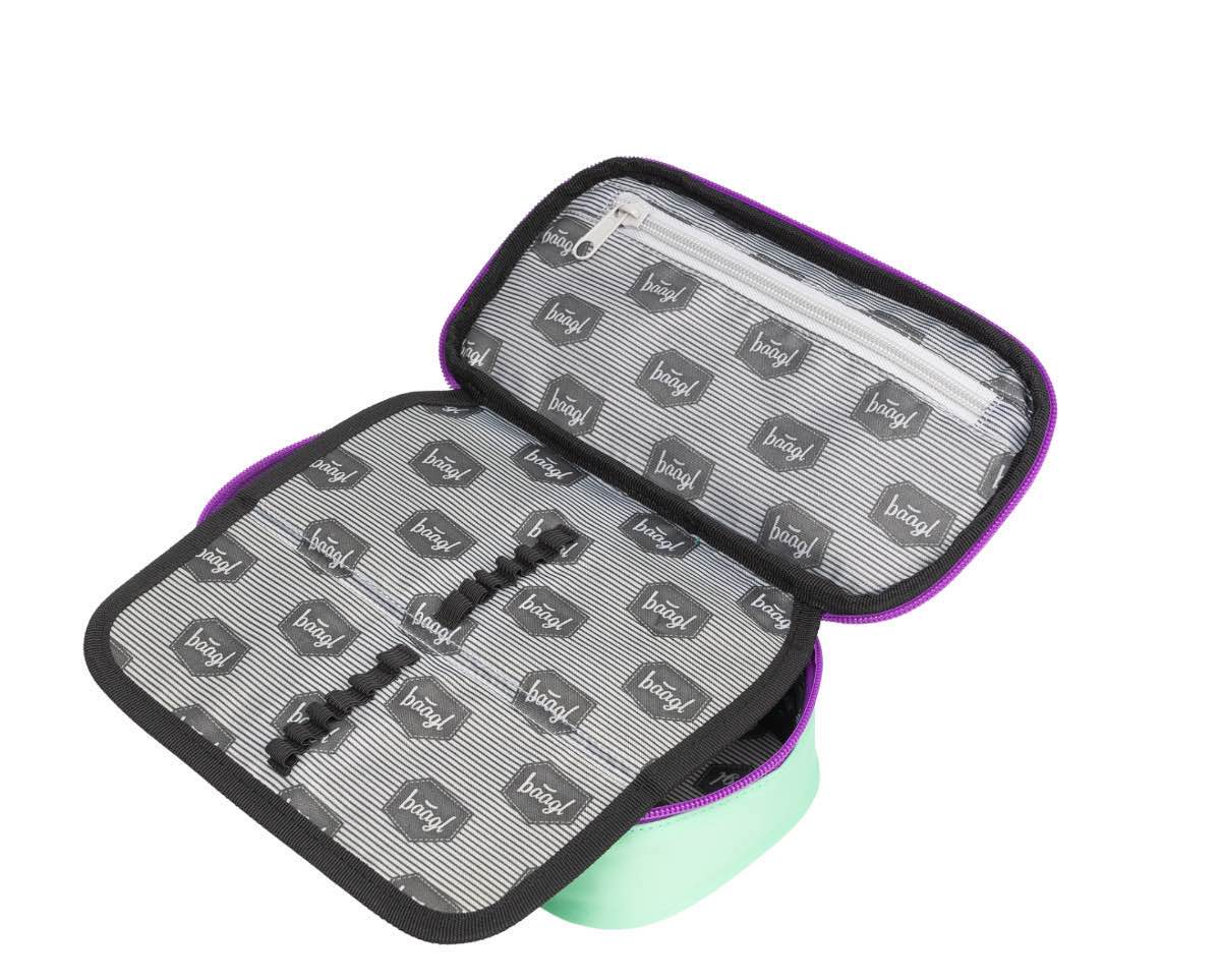 Pevný peračník na zips s dvojitou výklopnou chlopňou v mätovej farbe. Tento peračník poskytuje dostatok priestoru na všetky písacie potreby.