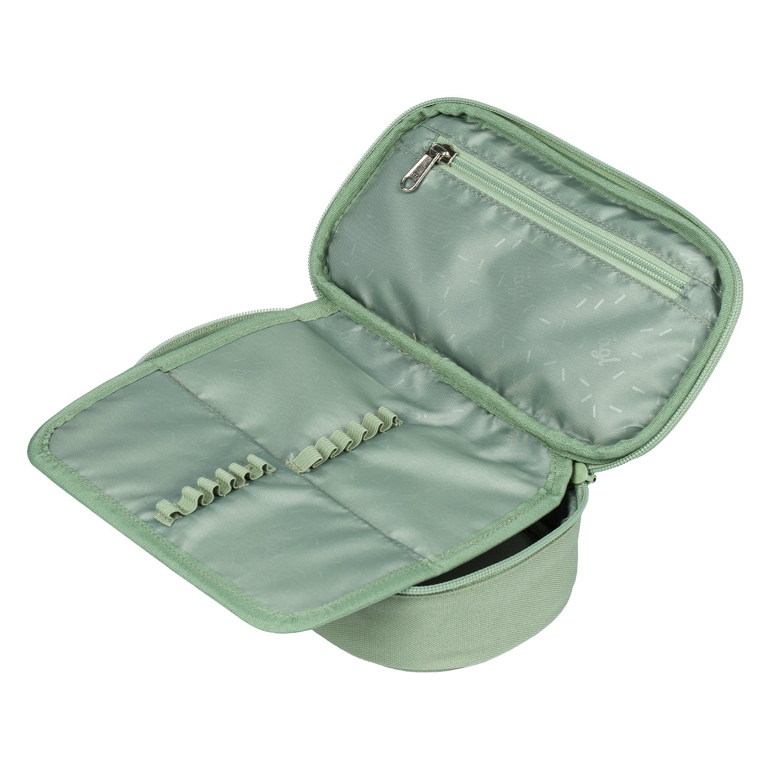 • Kompaktný peračník na zips s priestrannou hlavnou priehradkou a dvojitou chlopňou ponúka dostatok miesta na písacie potreby a drobnosti.