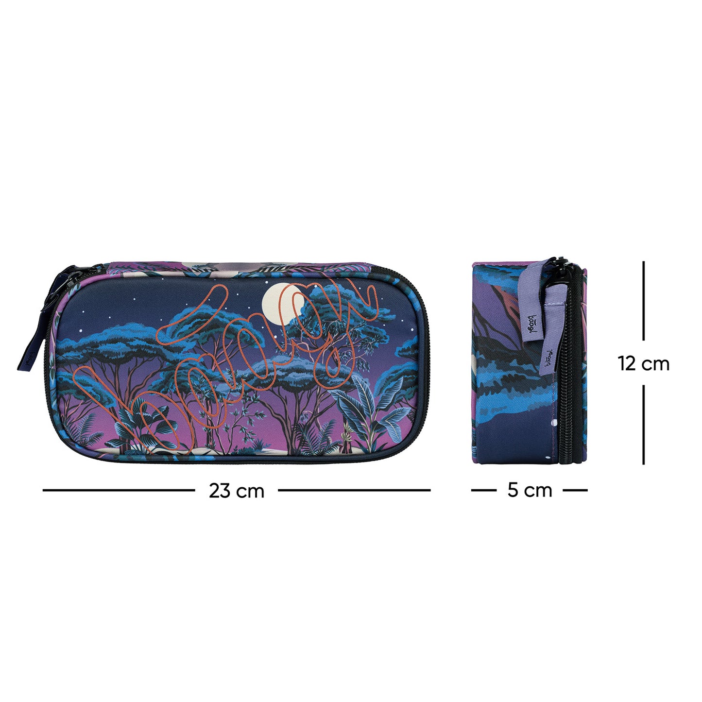 Pevný školský peračník v modrej a fialovej farbe, v praktickej veľkosti do každého batoha.