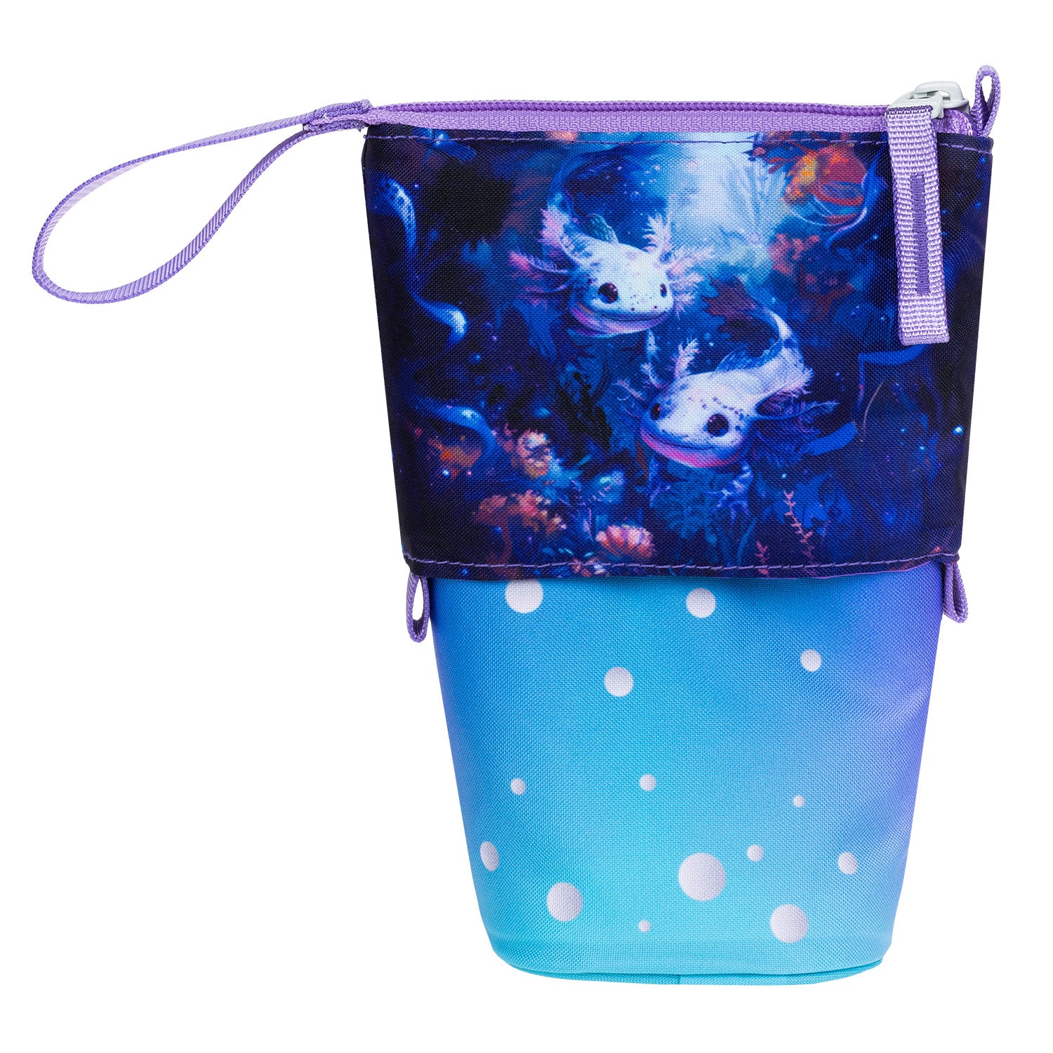 Praktické puzdro na pastelky s motívom magického axolotla premeníte jedným ťahom na stojan – ideálny doplnok pre všetkých malých i veľkých umelcov.