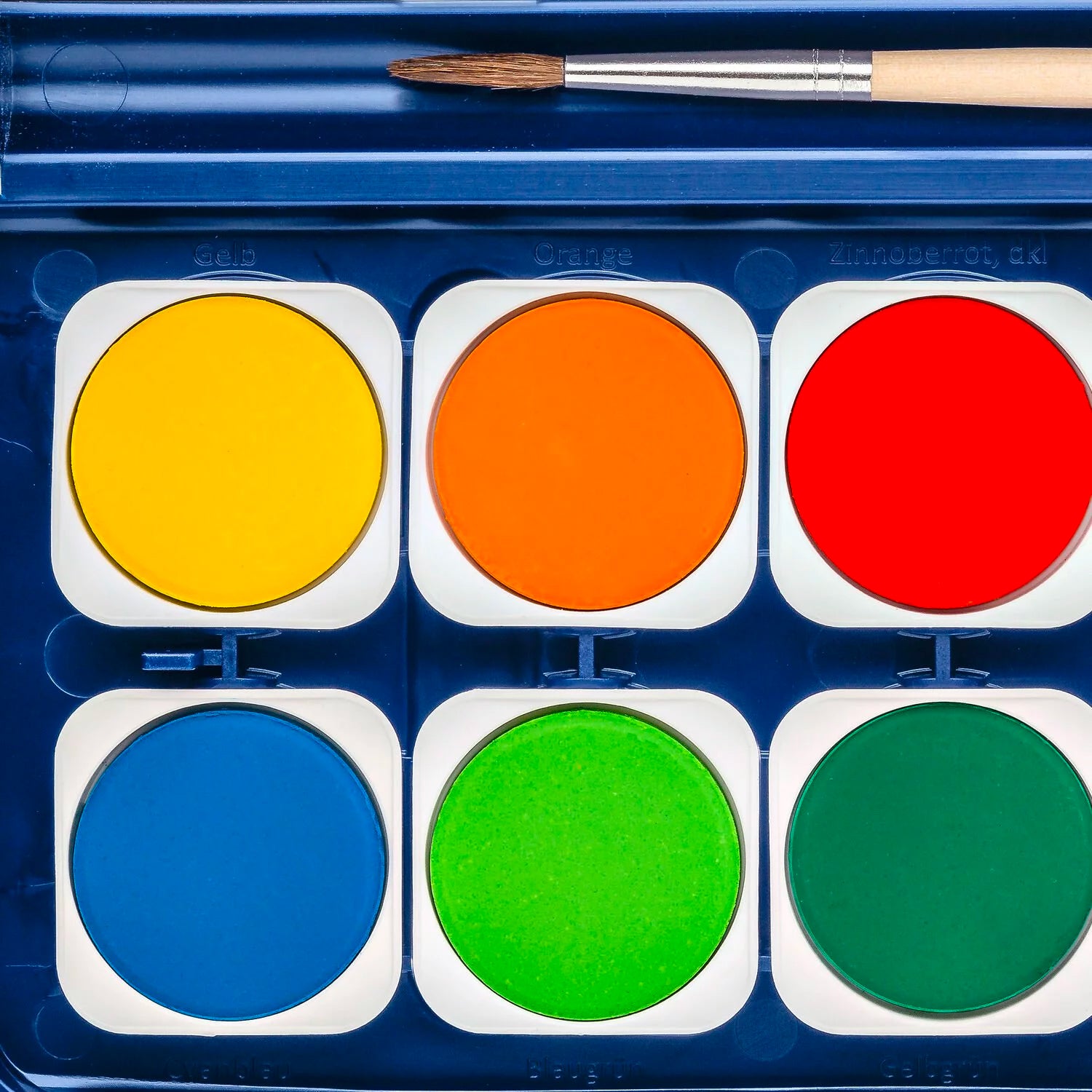 • 12 akvarelových farieb v samostatne vymeniteľných kelímkoch.