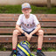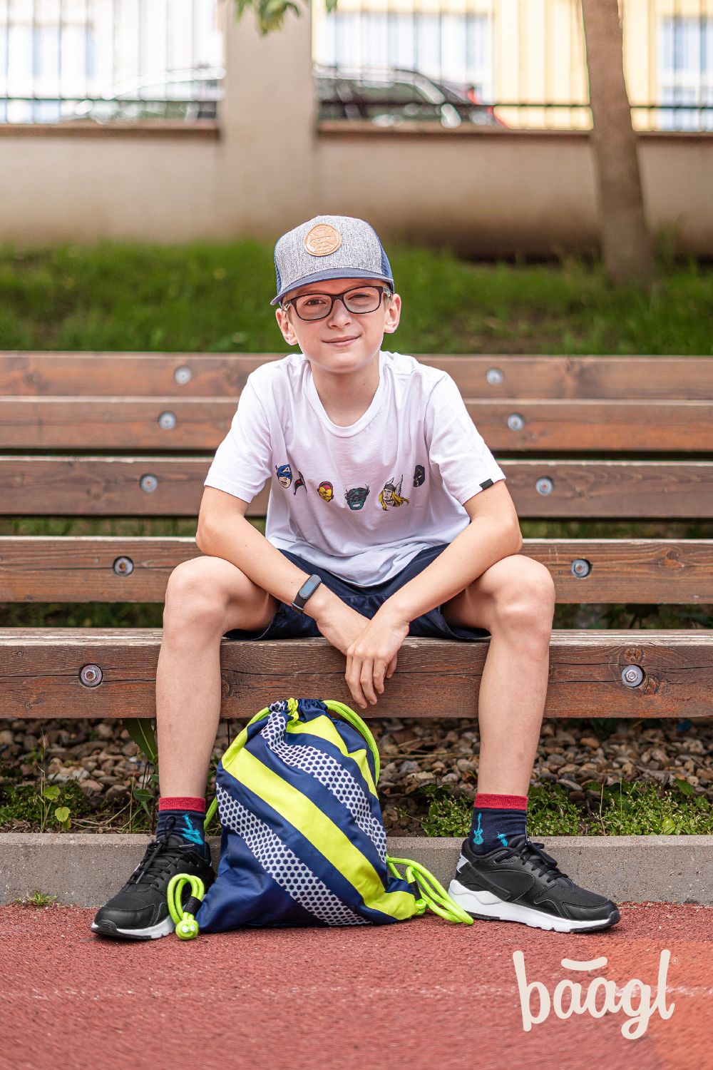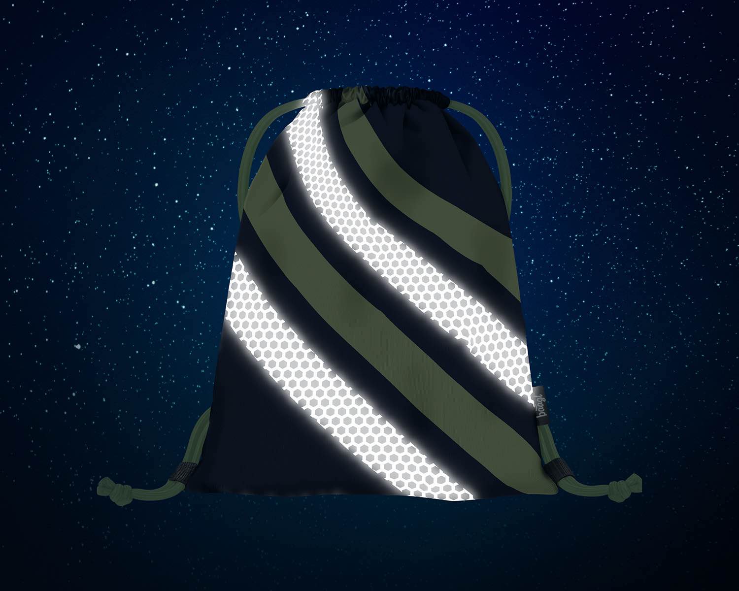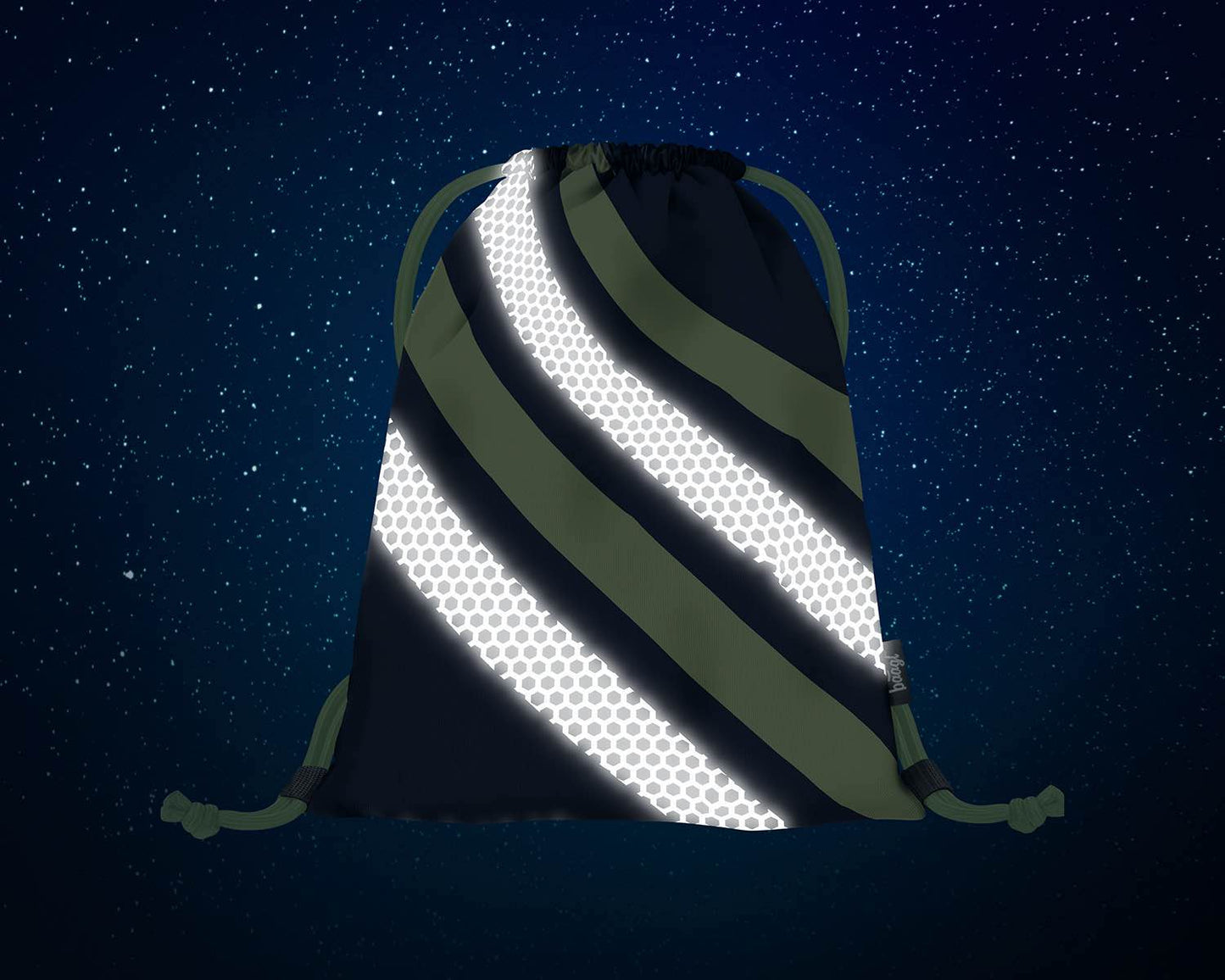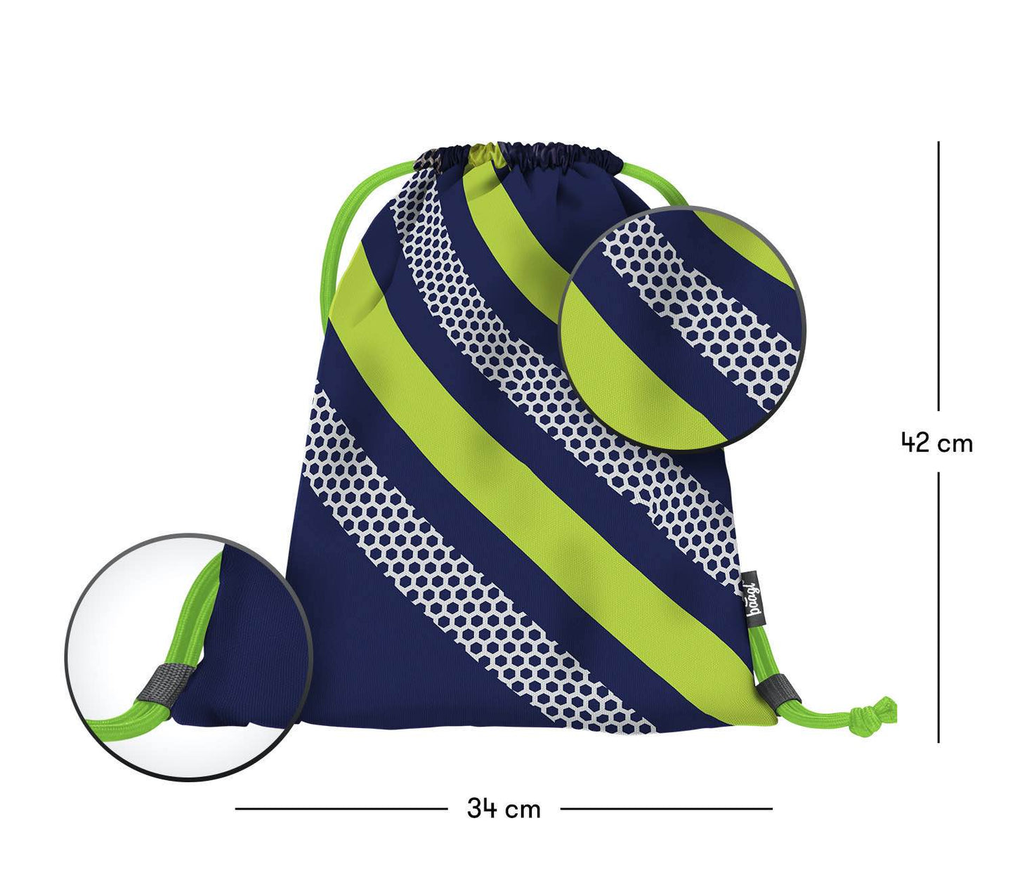 Chlapčenské vrecko na cvičky alebo prezuvky s výraznými neónovými pruhmi na prednej strane.