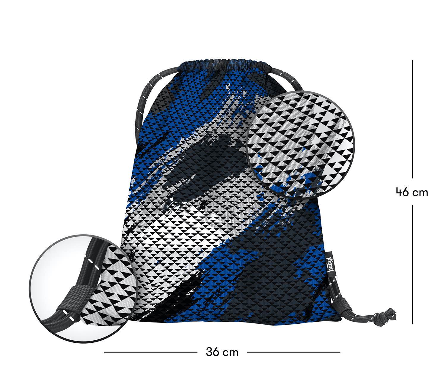 Chlapčenské vrecko na obuv alebo prezuvky z pevného umývateľného materiálu.
