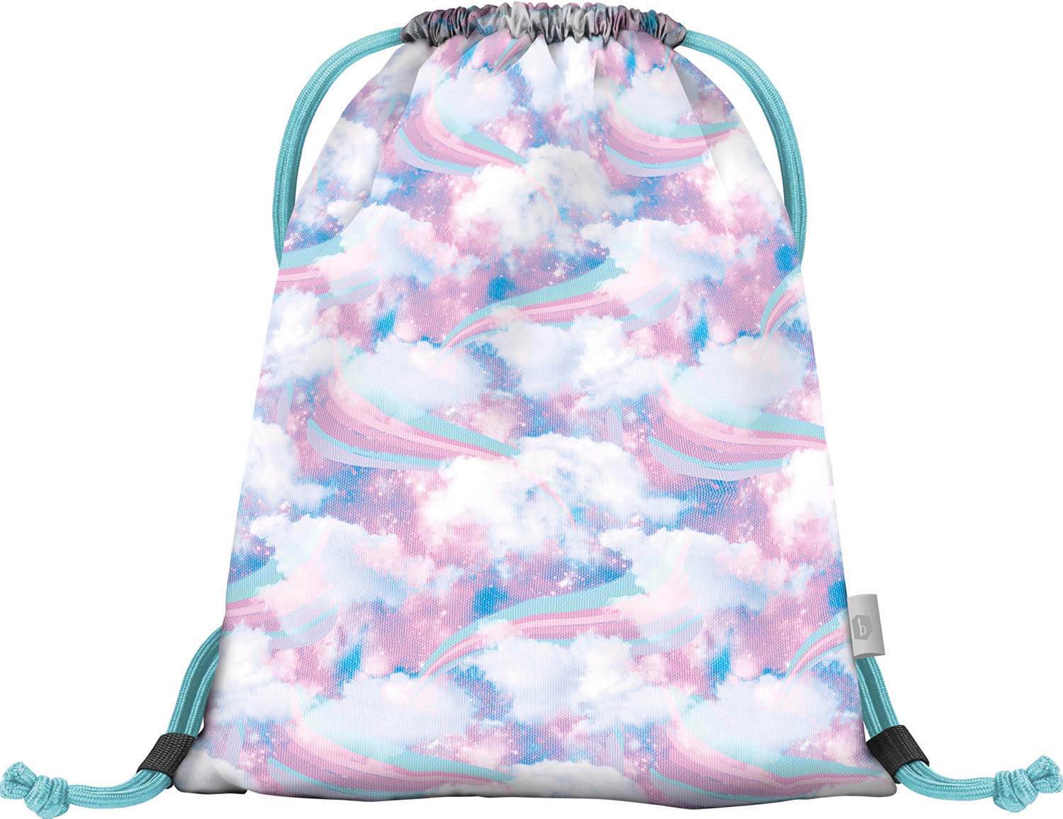 Dievčenské vrecko na papuče alebo na telocvik Nebo je vyrobené z pevného vodovzdorného materiálu. Má zosilnené šnúry na pohodlné nosenie na chrbte a praktickú kapsičku na zips.