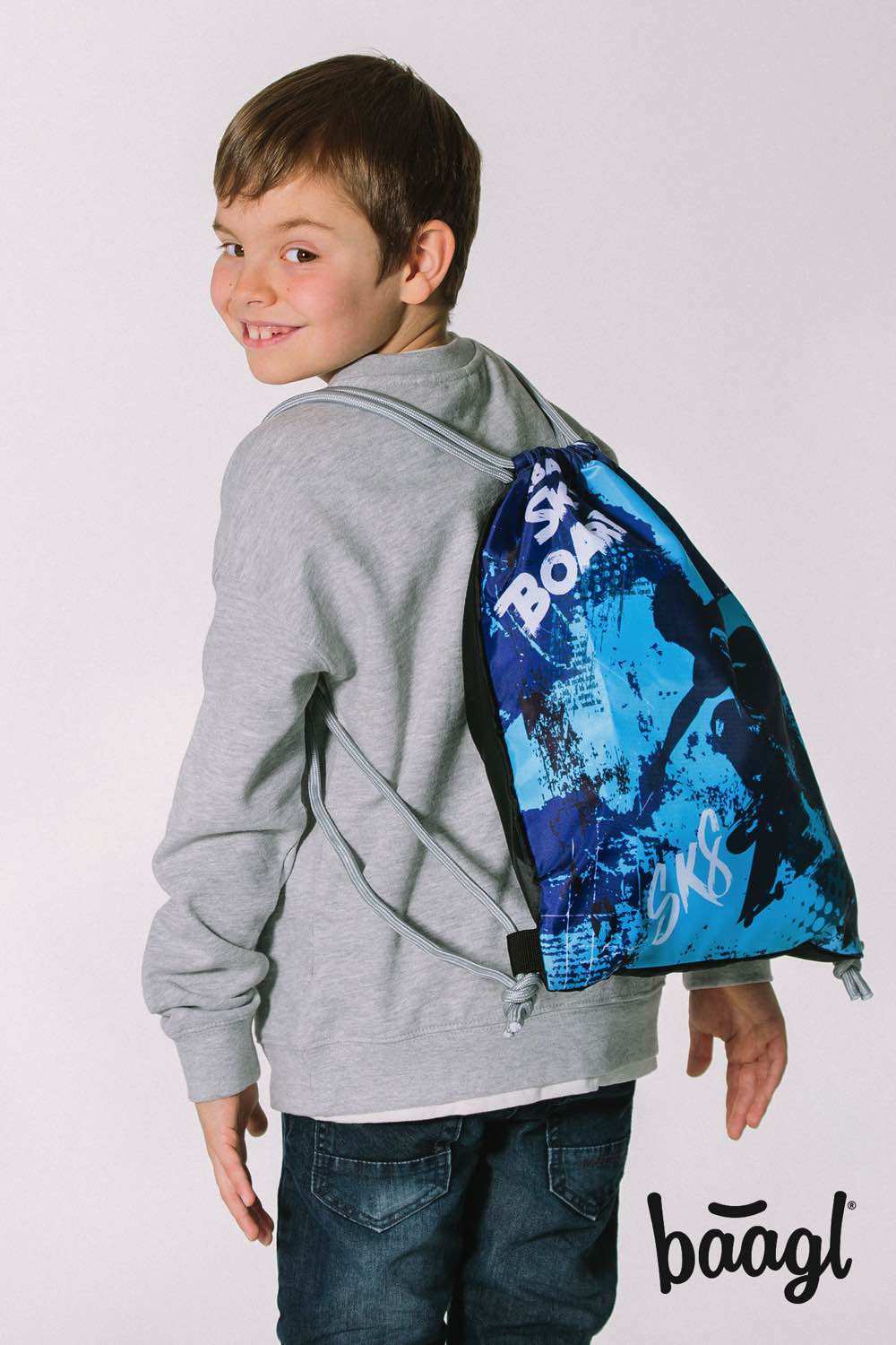 Chlapčenské vrecko na obuv v modrej farbe. Vrecko možno využiť aj ako vak na chrbát pri voľnočasových aktivitách.