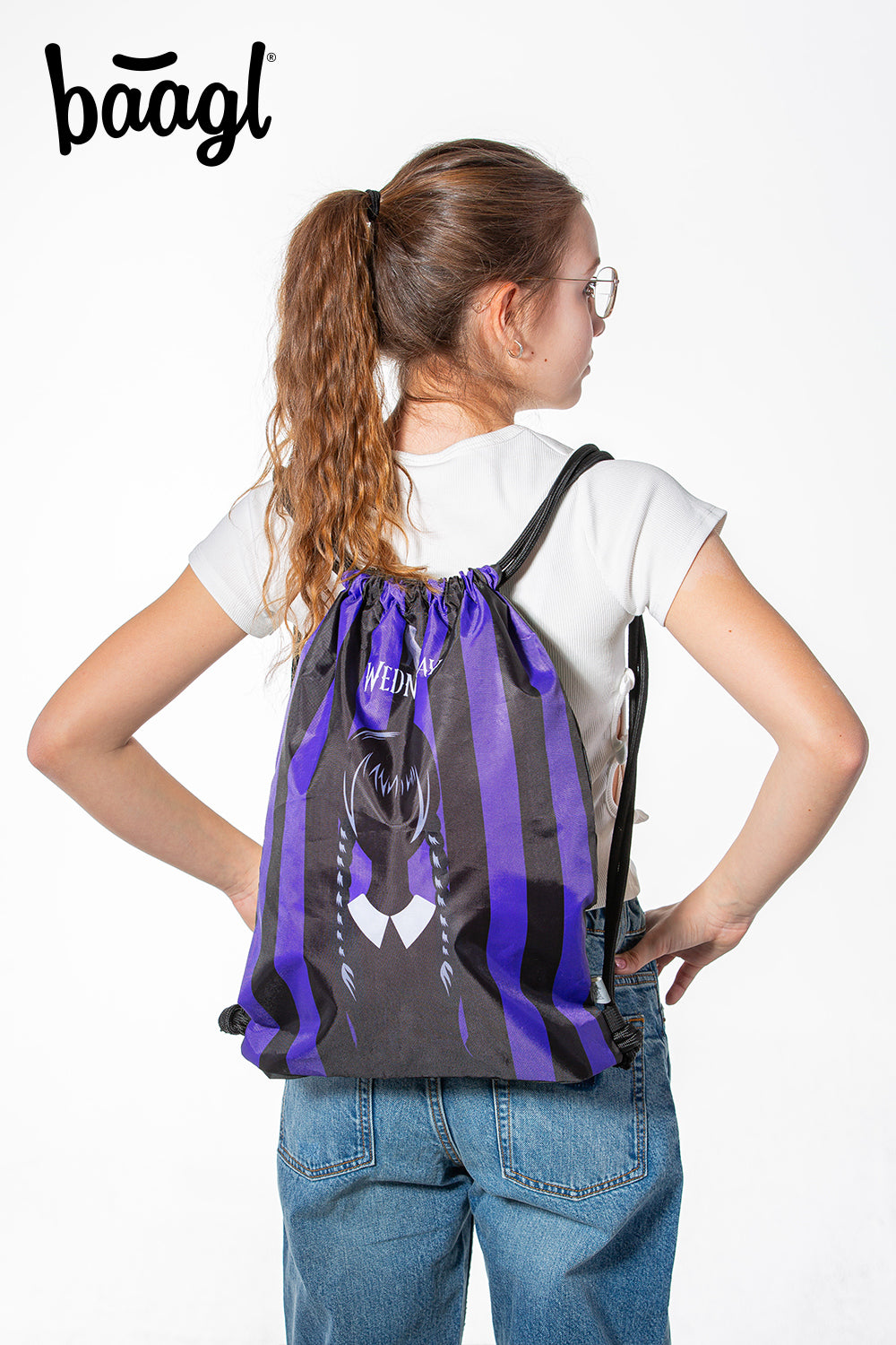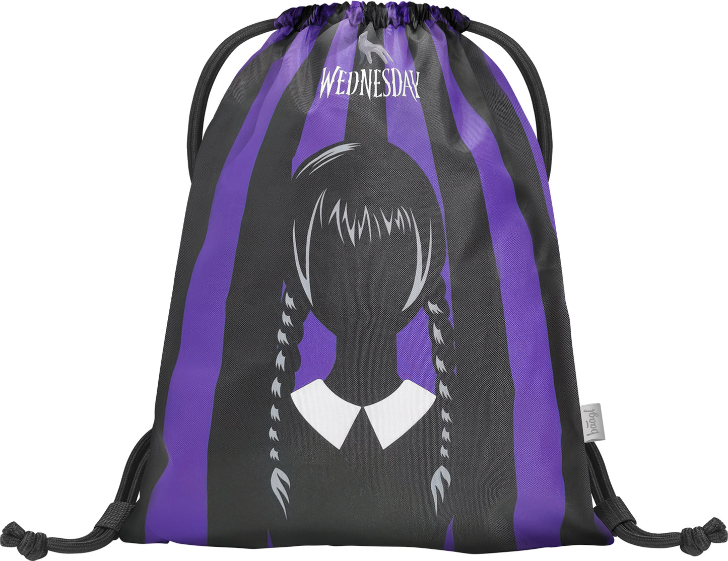 Praktické vrecko na obuv alebo telocvik s jedinečným motívom populárneho amerického seriálu Wednesday.