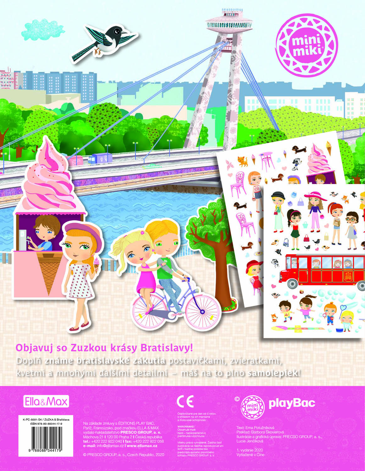 Obľúbená séria minimiky prichádza s ďalšou novinkou v podobe zábavnej samolepkovej knižky, v ktorej budú deti spoločne s bábikou Zuzkou a jej kamarátkami Luciou a Katarínou objavovať najznámejšie zákutia slovenskej metropoly Bratislavy. Známe bratislavské scenérie môžu deti dopĺňať množstvom krásnych samolepiek podľa vlastnej fantázie a v knihe nájdu aj veľa zaujímavých informácií o tunajších pamiatkach, známych miestach, ale aj napríklad o vychýrených špecialitách slovenskej kuchyne